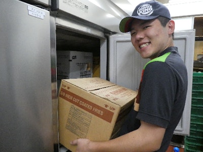 肉を焼いたり、ポテトを揚げたりするのはすべて機械作業。