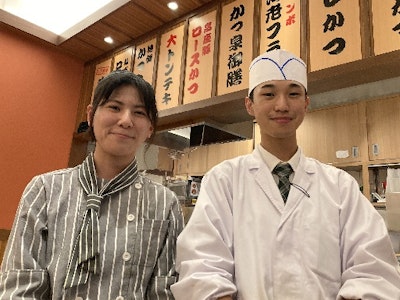 [職種名]: 回転寿司店の(1)ホール(2)キッチン