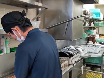 ・下がってきた食器を洗う(業務用の洗浄機)