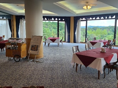 自然豊かなゴルフ場内のレストランで、