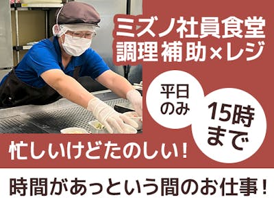 【無料まかない付&15時まで】ミズノ社員食堂の調理補助・レジ♪未経験OK&土日祝休み!社割あり*お互い様の雰囲気が嬉しい♪